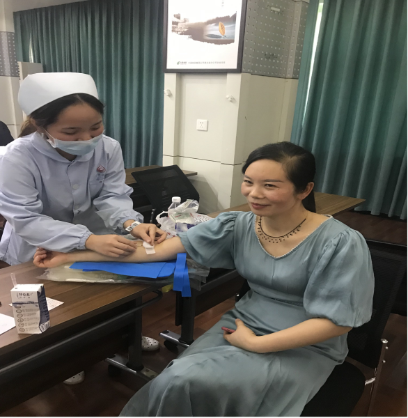 金融業務部李天浩笑著對醫務工作者說:“按體重,我可以多抽些,幫我拿個最大的血袋多抽點,還可以減肥呢。”一下子把我們大家都逗樂了。