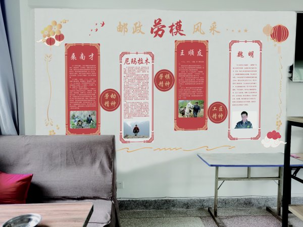 為更好的發揮榜樣示范引領作用,激勵和引導廣大職工建功新時代,玉溪市分公司以尼瑪拉木、王順有、桑南才、魏明的先進事跡制作“勞模風采”展板在職工食堂展示,弘揚勞模精神,感悟榜樣力量,豐富職工之家內涵。