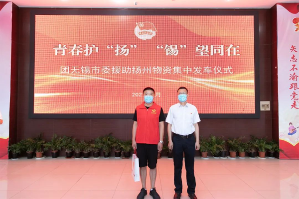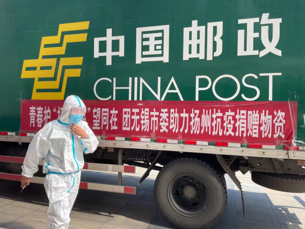 8月8日,無錫市團市委舉辦“青春護‘揚’ ‘錫’望同在”援助揚州物資集中發車儀式,將無錫各界人士的關懷和支持共22萬件防疫物資發往揚州,無錫分公司郵運駕駛員賀慶首發前往。