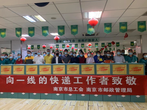 8月26日下午,南京市總工會新興產業工會主席許孔文、新興產業工會副主席孫健、市郵政管理局副局長黃俊、市快遞協會秘書長王湖云來到南京郵政分公司,看望慰問在疫情期間奮戰在一線的郵政攬投員和順豐、韻達等快遞員,并送上慰問金和慰問品。南京郵政分公司副總經理呂瑞祥、工會副主席李鏡波等同志陪同慰問。