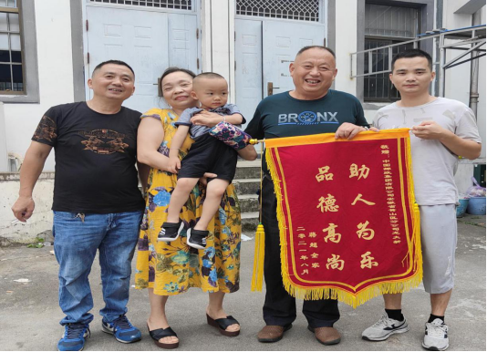 經了解,在8月20日早上,全家人醒來時,發現孩子不在家,于是就開始四處尋找,正在擔心是不是被騙子拐走時,好在警察及時聯系到他們,將孩子交還到他們手上。 為表示感謝,8月20日下午,小男孩一家來到黃山區湯口支局,將一面印有“助人為樂 品德高尚”的錦旗送到龍大新手中,對龍大新的熱心幫助表示萬分感謝。