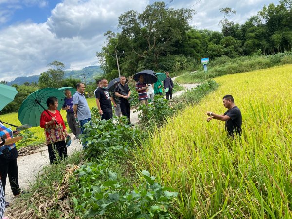 時間轉眼來到8月,眼看稻田里已是一片金黃,為營造身臨其境、眼見為實的示范帶動效果,渠道部歷時兩周、冒著盛夏酷暑在5個鄉鎮示范田召開了“鄉村振興、郵政助農”現場交流會,邀請了當地種植大戶、鄉鎮農技主任、區儲備糧公司技術員以及廠家技術專家進行現場交流。