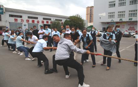 只聽一聲令響,參賽隊員鼓足勁頭開始了比拼,啦啦隊員們在兩邊加油吶喊,比賽隊員的心情也隨著搖擺不定的紅色繩頭起伏不定,兩邊的啦啦隊員們恨不得上場去加一把勁。經過12輪比賽,勝出的3隊角逐前三名。盡管前幾輪的比賽已經消耗了隊員們的大量體力,但進入決賽的三組隊員們摩拳擦掌,緊張的氣氛不言而喻。只見拔河隊員們個個鼓足了勁、憋紅了臉,為了集體榮譽,各方勢如猛虎,寸土必爭,都想獲得勝利。最終經過激烈的角逐,霍城縣和特克斯縣小組獲得第一名、城區和鞏留縣小組獲得第二名,可克達拉市和伊寧縣小組獲得第三名。公司領導分別為獲獎代表隊頒獎并祝賀他們取得了好成績。