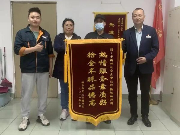 十一期間,安貞營業部的投遞員楊旭柏在投遞郵件時撿到了一部手機,因為手機鎖屏無法查詢失主信息,楊師傅站在原地等待失主回來的時候剛好有電話進來,楊師傅接聽電話后知道了用戶的住址,直接將手機送上樓,用戶當即要給現金表示感謝被投遞員拒絕后,用戶又想給禮品也被拒絕。用戶特意制作了一面錦旗,送到了安貞營業部。感謝安貞營業部職工楊師傅拾金不昧的高尚品格以及助人為樂的雷鋒精神,并贊揚楊旭柏為最美郵政人。(北京郵政工會)