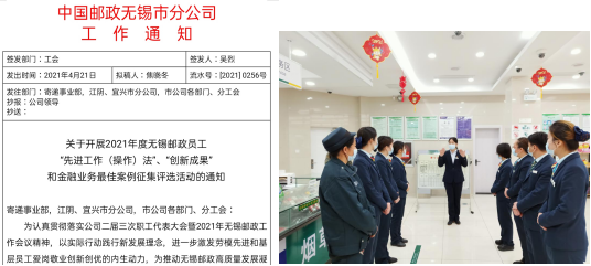 今年4月份以來,無錫郵政工會組織開展了2021年度無錫郵政員工“先進工作(操作)法”評選活動,各分工會積極組織發動,認真總結提煉,經過初評共申報了11篇“先進工作法”。