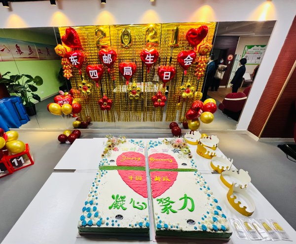 在雙十一業務高峰奮戰進程中,為給一線員工鼓干勁、提士氣、送溫暖,11月10日,市分公司工會薛筠副主席、劉敏部長來到東四郵政支局慰問員工,恰逢東四部門工會舉辦"決戰雙十一"四季度生日會,還專門定制了"東四郵局生日會 凝心聚力"大蛋糕。薛筠副主席、劉敏部長參加了生日會活動,為大家送上一塊塊香甜的蛋糕和衷心的祝福,凝聚全員之力打好雙十一攻堅戰!