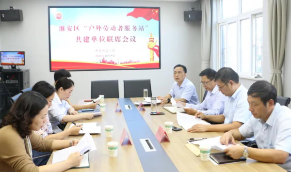 為落實“我為群眾辦實事”實踐活動,切實做好服務職工群眾工作,近期,淮安市淮安區郵政工會積極響應淮安區總工會的號召,與中國移動淮安區分公司、中國建設銀行淮安楚州支行、淮安市淮安區總工會聯合共建淮安區“戶外勞動者愛心服務站”。