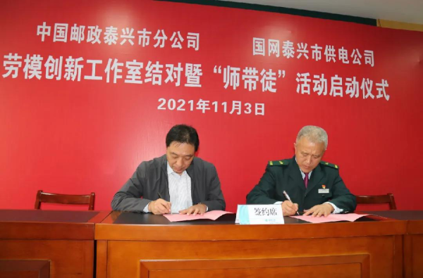 11月3日下午,泰州首次“跨行聯盟”在泰興正式啟動,泰興市郵政分公司何健忠勞模創新工作室與泰興市供電公司張強勞模創新工作室舉行結對共建簽約儀式。泰興市委,市、縣兩級郵政分公司及供電分公司領導,社會代表等50余人出席活動。