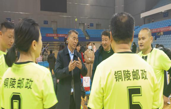 比賽期間,該市公司黨委領導親臨賽場慰問參賽隊員,并對隊員每分必爭的拼搏精神給予了肯定,鼓勵同志們再接再厲,爭取更好成績。并號召公司全市郵政員工要學習運動員奮勇拼搏的精神,圍繞當前旺季經營,在業務發展的賽場上團結一心、相互配合、形成合力,以豪情滿懷,意氣風發,努力向上的進取精神,為各項業務增量增收增效作貢獻。尤其在企業收官之戰中更要像球場上表現出團結一心、敢打敢拼、善打善成,打出銅陵郵政人迎難而上的信心和圓滿收官的決心。