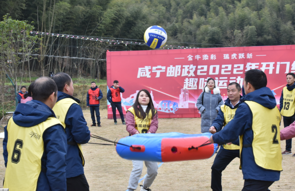 為了豐富職工的文化生活,提高職工的身體素質(zhì),更好的展示咸寧郵政職工的精神風(fēng)貌,增進(jìn)職工之間的友誼和協(xié)作,培養(yǎng)集體意識和團(tuán)隊(duì)精神,增強(qiáng)企業(yè)凝聚力和向心力,營造生動活潑、寬松和諧、積極向上的良好氛圍,同時(shí)也為2022年郵政金融開門紅加油鼓勁,12月14日下午,咸寧分公司在陳家溝星翔拓展基地舉辦了“金牛添彩·瑞虎躍新”趣味運(yùn)動會。共有來自市分公司、6個(gè)縣市班子成員、部門負(fù)責(zé)人、支局經(jīng)理等150余名干部職工參加此次活動。副總經(jīng)理、工會主席胡明生作開幕、閉幕講話,黨委書記、總經(jīng)理梅立勤宣布比賽開幕。