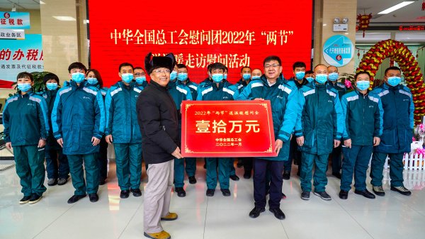 全總慰問團為郵政“快遞小哥”送來10萬元慰問金,祝愿郵政“快遞小哥”過一個幸福美滿的中國年。郭明義與郵政快遞員代表親切握手,現場贈送《咱們為什么要有信仰-寫給職工的十二封信》等書籍,親筆署名送上真摯的關懷。