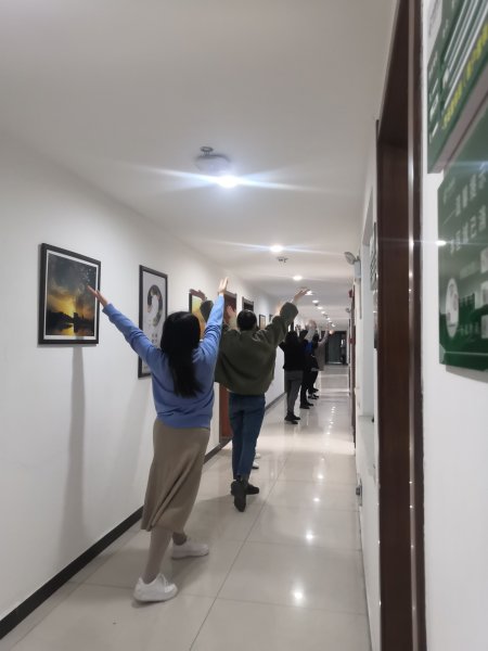 各部室活動地點采取就近原則,辦公區域、走廊區均可,組織開展廣播體操、跳繩等鍛煉活動。該活動讓廣大干部職工能夠在繁忙的工作中短暫抽出身來,伸伸胳膊、抬抬腿、彎彎腰,讓大家在短時間內達到活動肌肉的效果。