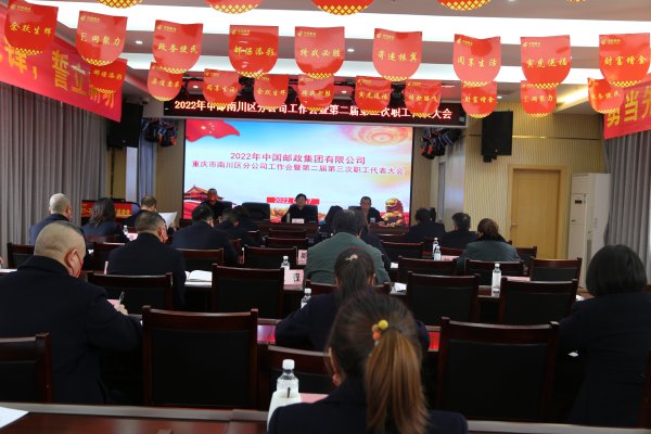 2月17日,南川區分公司召開2022年工作會議暨第二屆第三次職工代表大會,參會人員共34人,其中職工代表27人。大會主要任務是:高舉習近平新時代中國特色社會主義思想偉大旗幟,深入學習貫徹黨的十九屆六中全會及中央經濟工作會議精神,認真落實市分公司、涪陵片區分公司2022年工作會議精神,總結回顧2021年主要工作,安排部署2022年工作任務,組織和動員分公司全體員工著力履職盡責,奉獻崗位價值,全力開創南川郵政改革發展新局面。