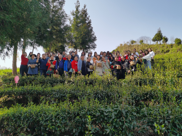 “三八”節當天,中郵萬盛分公司60余名女性員工早早出發,前往南桐鎮定青茶園,去赴一場親手采茶、制茶、品茶、悟茶的特殊“約會。到達茶園,分公司王總向全體女職工致以節日的問侯和美好的祝福,希望大家充分發揮“半邊天”的作用,努力創造新佳績,與分公司同發展共進步。