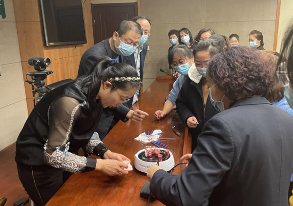 活動中,老師向大家介紹了口紅制作的材料及制作過程,桌上擺著植物色粉、植物精油、圓形的模具、燒杯等工具。據悉,所用的材料都是純植物的,無任何添加劑。女員工們認真聽完老師的講解步驟并熟悉工具后,便開始制作,通過稱重、攪拌、固定等一系列步驟,女員工專屬定制的各種色號的口紅出爐了。