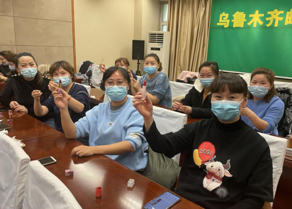 2022年3月4日下午,烏魯木齊郵區中心舉辦“一路郵你”第一屆慶三八系列活動之——“唇唇欲動、為美而生”DIY精油口紅制作活動。近30余位女員工參與其中,女員工們對這個新鮮的活動表現出濃厚的興趣,郵區中心副總經理、工會主席劉建也來到活動現場,觀摩了女員工們制作口紅過程。