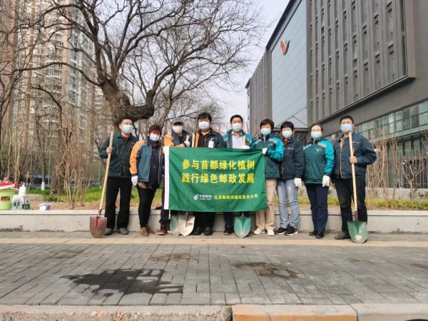 4月9日上午, 同城業務分公在北京市西城區紅蓮南里開展義務植樹活動。本次活動以“參與首都綠色植物 踐行綠色郵政發展”為主題, 深入貫徹集團公司綠色郵政發展理念, 認真落實市分公司 “手植一棵樹 綠化一片天”國土綠化活動。
