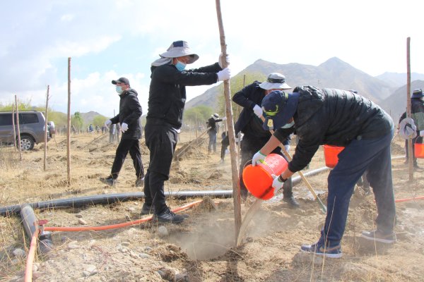 4月18日,西藏郵政在拉薩柳東大橋組織開展了“手植一棵樹 綠化一片天”——創建職工生態林植樹活動,區分公司黨委書記、總經理王樹橋和黨委委員、副總經理扎西頓珠,黨委委員、紀檢書記龐博以及35余名干部職工參加。