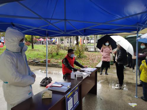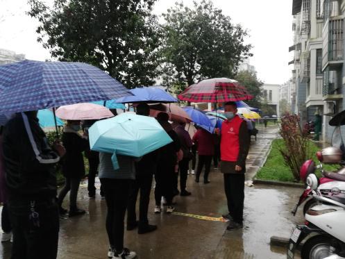 3月20日周日早上不到8點,郵政員工志愿者就奔赴蓉城鎮(zhèn)天華社區(qū)集合,自覺服從社區(qū)調(diào)遣安排,扛起責(zé)任、勇于奉獻,前往青山新城東區(qū)核酸檢測點,開展核酸檢測現(xiàn)場志愿服務(wù)活動,志愿者們冒雨維持現(xiàn)場秩序,引導(dǎo)社區(qū)居民保持一米線距離,提醒全程佩戴口罩,指導(dǎo)打開安康碼、行程碼,無安康碼攜帶身份證,做好檢測前準(zhǔn)備工作。與此同時,青陽縣分公司員工志愿者在該小區(qū)進出口開展查驗安康碼及行程碼、核酸檢測報告;配合社區(qū)核查各戶14天內(nèi)來往縣外及返回后核酸檢測情況等志愿服務(wù)。