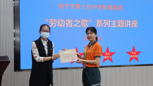 鄧艷芬以《風雨兼程——郵路上的平凡人生》為主題,講述自己從認識郵政、進入郵政、苦練技能,到成為一名營業部負責人、一名“全國五一巾幗標兵”“全國五星級投遞員”“全國郵政行業勞動模范”的成長歷程。通過馬班郵路上的忠誠信使王順友、“溜索姑娘”尼瑪拉木、“雪線郵路”上的幸福使者其美多吉等一個個先進典型人物,救活“死”信、備戰“雙11”、抗擊疫情等一個個親歷親見的鮮活故事,自行車投遞、電動車投遞、自動化智能化分揀等一個個不斷變遷的工作場景,鄧艷芬向南寧市第十四中學師生展示中國郵政多年來改革發展的成果和“人民郵政為人民”的初心和使命,贏得了廣大師生的贊譽。