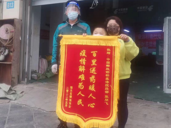 鑫港攬投部了解到情況后非常重視,立即指派張朋飛專人負責收寄并跟蹤至簽收,一場愛心接力相續展開。郵件收寄后第一時間被送往網路運營中心進行分揀分發,隨后又被轉運往曲周。由于曲周正處于疫情封控期,曲周分公司投遞人員無法正常到崗進行投遞作業。了解到情況后張朋飛立即上報寄遞部領導,業務經理周青龍在了解情況后,立即與曲周分公司溝通協調,曲周分公司又報請縣政府批準,在市、縣分公司和縣政府三方努力下,救命藥于5月9日被成功送到患者手中。