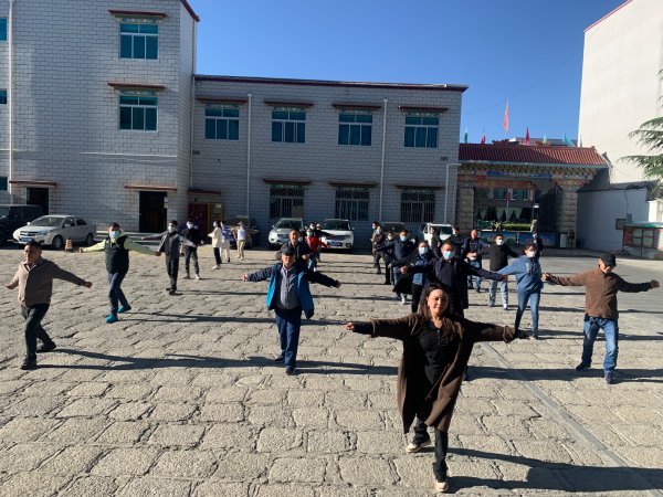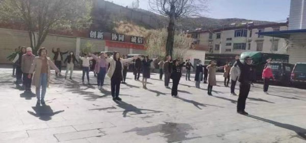 (圖為:日喀則郵政分公司工間操)
