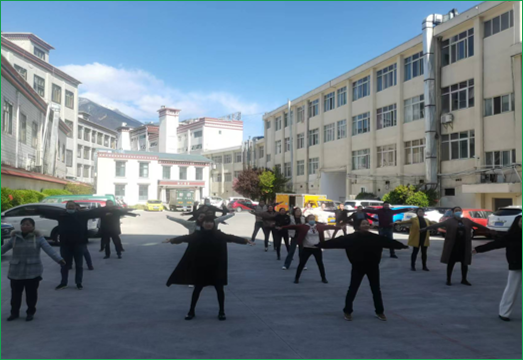 (圖為:那曲市郵政分公司工間操)