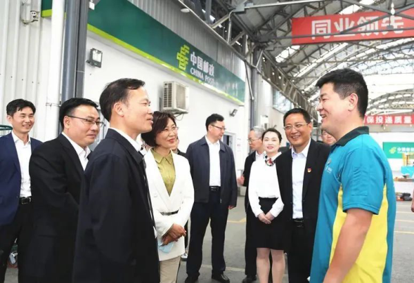在湖北郵政數字政務中心,易有權一行參觀了政務寄遞服務生產作業流程,詳細了解交管車牌、公安、身份證項目的生產運營情況。當得知該中心是郵政服務政府“放管服”改革、助力構建“智慧政務”新生態而建設的智慧運營中心,能夠實現政務服務全流程數字化管理后,易有權對郵政著力提高服務效率,優化服務品質,在助力優化營商環境、服務社會民生中展現的積極作為表示肯定,稱贊郵政強化科技賦能,有效釋放人力,切實為基層減負,提升了職工的幸福感和獲得感。