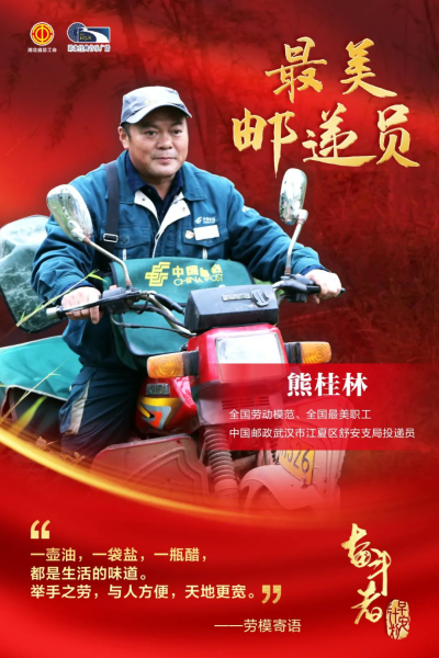 熊桂林是武漢市江夏區(qū)郵政分公司舒安支局鄉(xiāng)村投遞員。32年來,他累計行程60多萬公里,投遞郵件總重400余噸,保持著“零差錯”和“零投訴”的紀錄。他還為郵路上350多位空巢老人和100多位留守兒童提供力所能及的幫助,他成為空巢老人的“郵差兒子”、留守兒童的“熊爸爸”,鄉(xiāng)親們都親切地稱呼他為“憨仔”。他是一個平凡的人,卻用不計回報的善行成就了一番偉大。在節(jié)目中熊桂林寄語:“一壺油,一袋鹽,一瓶醋,都是生活的味道。舉手之勞,與人方便,天地更寬。”