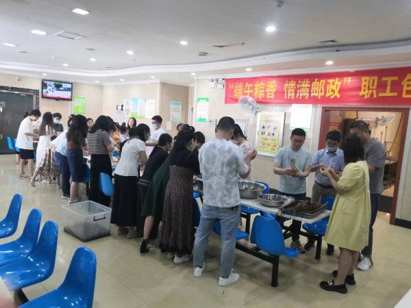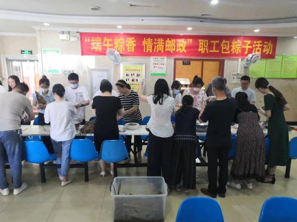 信陽市郵政工會組織開展了“端午粽香 情滿郵政”職工包粽子活動