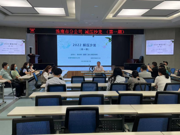 為幫助廣大干部職工緩解工作壓力、提高幸福指數(shù)、培養(yǎng)陽光心態(tài),引導促進廣大職工保持良好的身心健康和工作狀態(tài),實現(xiàn)職工進步、企業(yè)發(fā)展的良性循環(huán),根據(jù)省分公司2022年位為職工辦實事相關要求,5月27日,淮南市工會邀請國家二級心里咨詢師俞長模和30名基層一線員工共同開展了2022年減壓沙龍活動(第一期)。