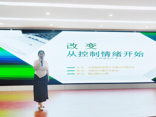 為進一步舒緩職工心理壓力,掌握情緒管理技巧,以更加良好的心理狀態投入日常工作。2022年6月16日下午,黃山市郵政工會開展了“改變-從控制情緒開始”心理減壓沙龍活動。黃山蝸牛心理教育心理咨詢師周璇受邀講授,市郵政公司相關部門管理人員、網點負責人和部分柜員參加活動。