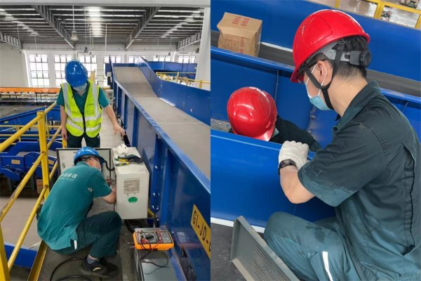 設備維護班技術人員檢修分揀設備