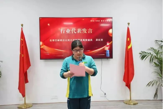 新當(dāng)選鹽城市勞模的鹽都分公司大岡支局投遞員茆紅芳作為行業(yè)代表,從堅(jiān)定理想信念、嚴(yán)守行業(yè)規(guī)范、服務(wù)發(fā)展大局、主動(dòng)融入基層四方面發(fā)表感言。暖“新”驛站以轄區(qū)內(nèi)各郵政網(wǎng)點(diǎn)郵愛驛站為載體進(jìn)行打造,驛站內(nèi)配備微波爐、冰箱、充電、凈水器、書籍、電視機(jī)等,為廣大快遞小哥等戶外工作者提供休息、補(bǔ)給等溫馨服務(wù)。暖“新”驛站不僅為快遞小哥等戶外工作者帶來生活工作上的便利,還進(jìn)一步強(qiáng)化資源共享、引領(lǐng)行業(yè)自律、反映行業(yè)訴求,推動(dòng)行業(yè)依法依規(guī)生產(chǎn)經(jīng)營(yíng)、健康有序規(guī)范發(fā)展。