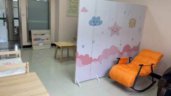 “媽咪小屋”位于北京路支局二樓職工小家內,占地面積約25平方米,根據實際需求設置4個功能區,整體風格溫婉簡約,突出實用性。原木和淡粉的色調,讓整個房間更加明亮、恬淡溫馨。在哺乳休息區內,不僅配置了屏風隔斷、可調節躺椅、按摩椅,還免費提供防溢乳墊、清潔棉簽等哺乳專用品,解決媽媽們哺乳和背奶難題;在嬰兒護理區內,配置了嬰兒·床、嬰兒護理臺、尿不濕、柔膚濕巾等嬰兒專用品,讓寶寶護理、臨時休息等問題迎刃而解;在休閑閱讀區,配置了沙發、茶幾、書報欄及配套報刊、育嬰書籍等設施,實現了休閑、閱讀多功能融合;在電器使用區,配置了置物柜、母乳儲存專用冰箱、飲水機、微波爐等電器一應俱全,打造了開放式小廚房。墻面還張貼了寶寶健康小知識、母乳喂養好處等宣傳展板以及“媽咪小屋”管理制度,內容科學豐富。經過合理化、規范化布局的“媽咪小屋”真正實現“一屋多用”的功能,為處于孕期、哺乳期的女職工們撐起了一片愛的天空。