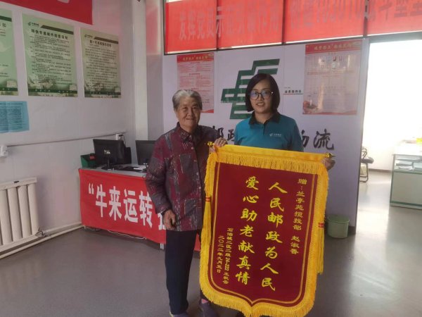 2022年9月5日下午一位老人顫顫巍巍來到銀川市郵政東城分公司蘭亭苑攬投部找趙淑香同志,向她呈上寫有“人民郵政為人民 愛心助老獻真情”的錦旗,并送上一封感謝信,表達對趙淑香同志十幾年如一日的熱心服務及無私奉獻表示感謝!