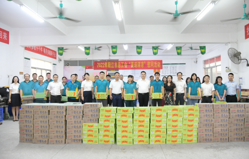 陽江市總工會常務副主席為活動致辭,要求各級工會站在“以人為本、安全生產”的高度,開展好“送清涼”關愛活動,切實關心職工身體健康和勞動安全,并親切叮囑員工持續做好個人的防暑降溫和安全生產,落實疫情防控工作,保障自身安全和健康。