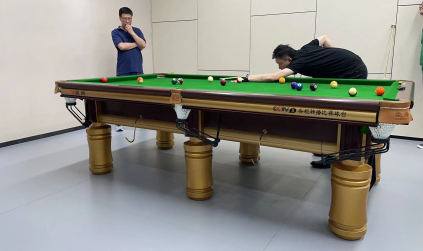 旁邊乒乓球室的賽事進行的如火如荼,臺球賽也在靜靜展開。臺球比賽中不需要力量的比拼和快速的反應,更多的是需要沉著的性格和精心的布局,每一個動作都彰顯出臺球健兒們的優良品性和非凡智慧。賽場上不僅有男兒的颯爽英姿,還有不少巾幗英雄,不讓須眉。
