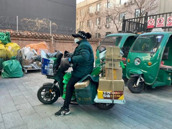 最引人注目的是一位女投遞員,在她墨綠色的電動(dòng)車上從后座到前梁依次堆滿了成箱的水果、兩大包文件、成袋的大米,前面的車筐還裝了不少小件快遞。“因?yàn)槲覀兺哆f的片區(qū),不少都是胡同、四合院,三輪車無法進(jìn)去,最好用的就是兩輪電車,女投遞員們可以說是拋家舍業(yè),她們不少人,手和腳都凍壞了。”陳蘭穎感動(dòng)地說。