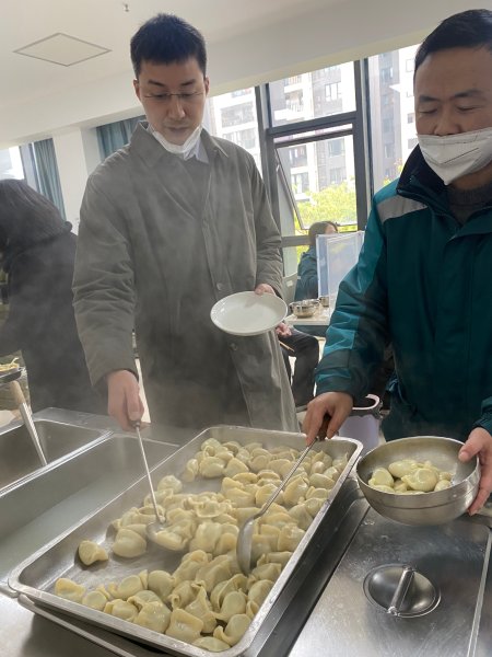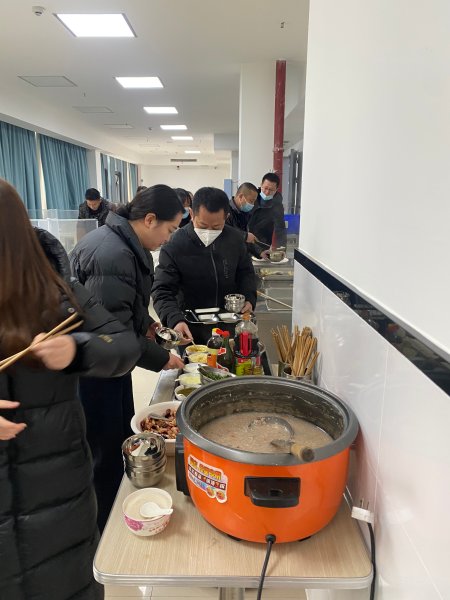 “伙伴們辛苦了!今天是臘八節,明天就是元旦啦,工會給大家準備了一些臘八粥和手工水餃,讓大家暖心過節!”12月30日中午,北碚區分公司工會主席張萬波在食堂給取餐的員工話起了家常。