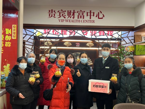 活動現場,大家分工協作:洗檸檬、切檸檬、裝罐、加蜂蜜、封裝打包,一切井然有序。區分公司總經理朱軍更是親臨現場,親手為員工制作愛心檸檬蜂蜜茶,并到一線關心慰問員工和客戶。當員工們收到區分公司自制的愛心檸檬蜂蜜茶時,都激動得熱淚盈眶;同時客戶也感受到了郵政的關心關愛,提高了與客戶的粘連,為旺季業務發展貢獻了力量。