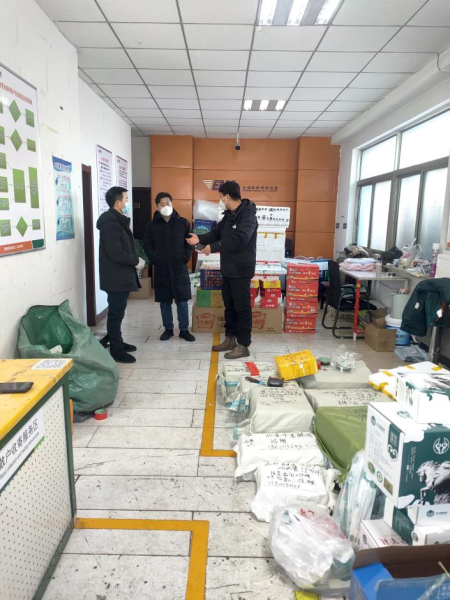 在投遞部的工作現場,慰問組與職工親切交談,詳細詢問節日期間大家的工作生活情況,囑咐他們面對春節期間旺季生產業務量猛增的嚴峻形勢,務必做好個人安全和健康保護,要密切關注天氣變化,注意出行安全。在保證服務質量、保障郵運暢通的前提下,全力以赴滿足人民用郵需求。同時對他們在疫情期間的表現給予充分肯定,鼓勵大家繼續發揚不怕苦、不怕累的奉獻精神,用實際行動踐行郵政人的責任和擔當。