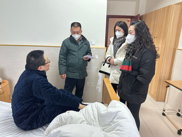 1月16日,武隆區分公司總經理任麗華、副總經理熊小敏前往中醫院看望慰問因病住院職工侯建,為他送去單位的溫暖與關懷,詳細詢問侯建的身體狀況和治療情況,并鼓勵他要以樂觀向上、積極的心態面對疾病,積極配合治療,早日康復。領導的噓寒問暖和誠摯祝福讓侯建感受到了大家庭的溫暖,并表示會好好調養身體,爭取早日回到工作崗位,以實際行動干好自己的本職工作。