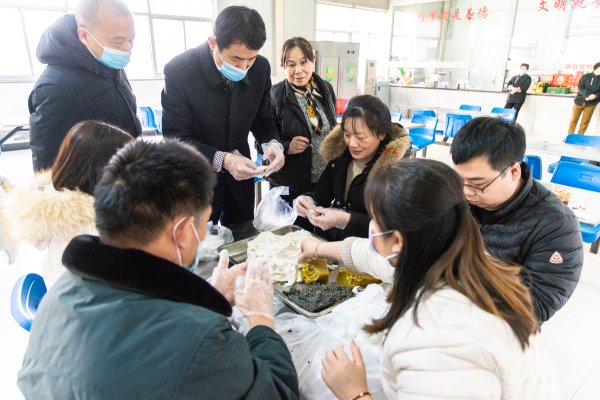 活動現(xiàn)場,工會提前準(zhǔn)備好了糯米面粉、芝麻、蓮蓉等材料,大家興致勃勃地挽起袖子,動起手來。揉面的揉面,拌餡的拌餡,搓、捏、按、團,一塊塊白白的糯米面團成一個球,壓成一個餅包上餡,做成誘人的湯圓。巧手的職工還在“老師”的指導(dǎo)下,捏出了一個個憨態(tài)可掬的湯圓?,F(xiàn)場交談聲、歡笑聲不絕于耳,洋溢著歡樂祥和、喜氣洋洋的氣氛?!坝H手包的湯圓更香更甜、更暖心胃!”圓滾滾的湯圓,不僅包裹著美好的祝愿,包裹著甜美的生活,更包裹著這份喜悅的心情。