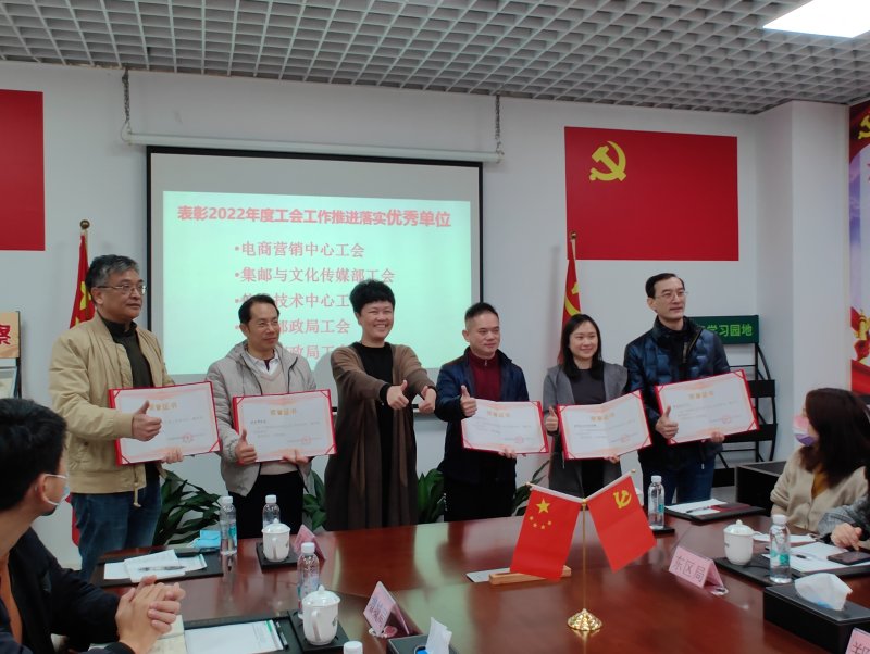 會議通過視頻回顧了2022年廣州市分公司工會工作亮點,對2022年度工會工作推進落實優秀的5個基層工會進行表彰,就2023年工會工作安排及年度費用安排與各單位進行了交流,對近期員工健康休養、員工文體活動、女工工作等進行了布置。