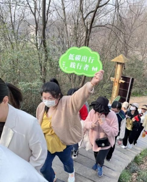 “低碳出行踐行者”“綠色生活推動者”,一塊塊響亮的標語牌,宛如一條綠色的絲帶,將登山的女神們像珍珠一般串聯起來,形成了一幅精致和諧、生機盎然的美好畫面。