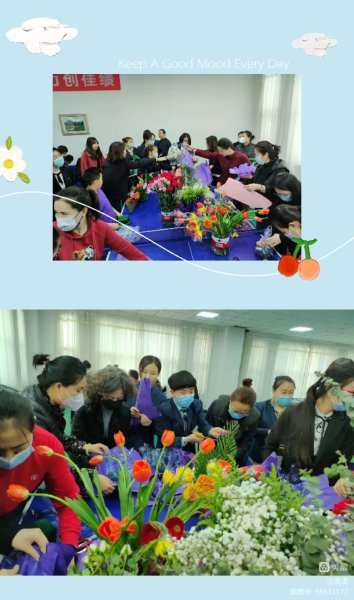 在花藝師的精心指導下,百合花、勿忘我、紅玫瑰、康乃馨等鮮花,經過女職工們精心巧妙的構思、修剪、整枝和裝飾,變成了一件件精美的藝術品,充滿詩情畫意。這一活動,讓大家在細碎的時光研磨中品味生活的明媚與浪漫。