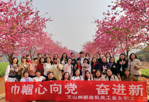 “三八”國際婦女節來臨之際,文山州郵政機關工會于3月7日組織45名女職工在硯山櫻花大道,開展“巾幗心向黨.奮斗新征程”學習二十大 喜迎春之韻三八節活動,州分公司領導班子全程參與了活動。