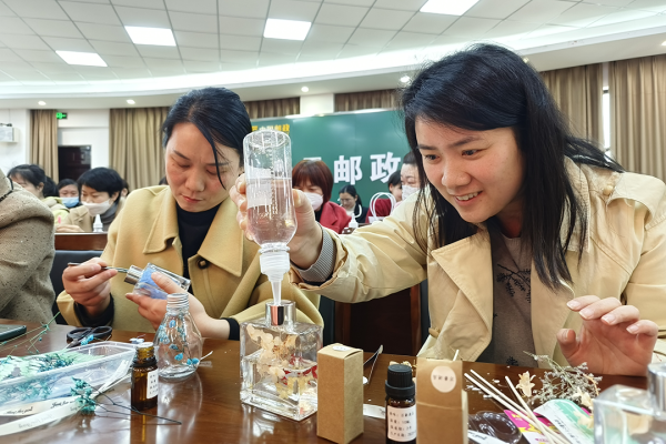 鄭州市郵政分公司舉辦“三八”節手工做皂活動暨健康講座,市區女職工代表齊聚一堂、共慶佳節。