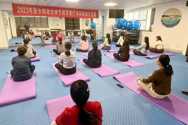 新鄉市郵政分公司為女職工們準備了肩背理療休閑瑜伽示范課,讓大家享受瑜伽帶來的愉悅與放松,豐富女職工們的健康知識。